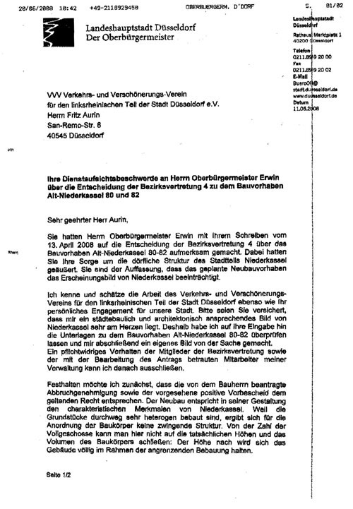 Dienstaufsichtsbeschwerde an den Oberbürgermeister der Stadt Düsseldorf vom 13.4.2008