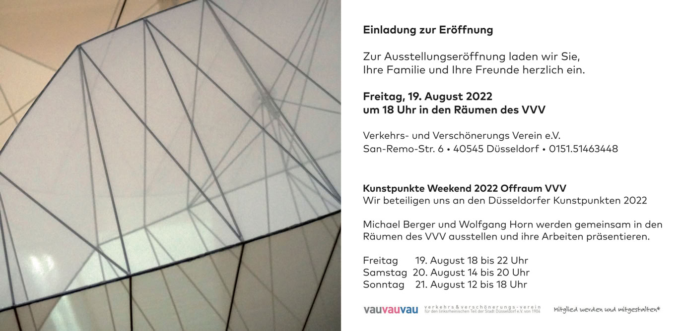 Die Eröffnung ist am Freitag, 30. September 2022 um 18 Uhr in den Räumen des VVV