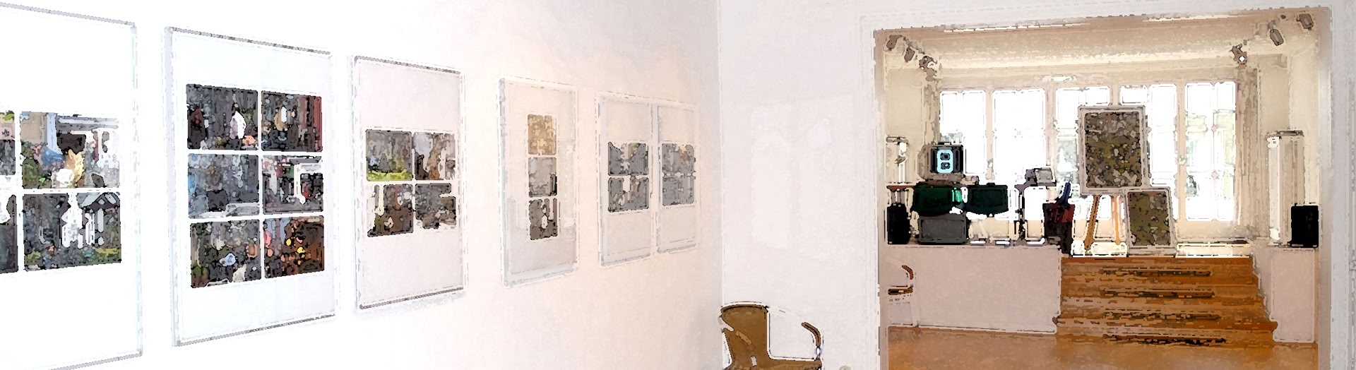 "Gezeigt werden 41 Bilder. Als Vorlage dienten Abbildungen aus einem 2003 erschienenen Katalog von Sigrid Kopfermann. Ich habe diese Abbildungen um jeweils 50% vergrößert, entsprechend dem ursprünglichen Bildmaterial auf Leinwand bzw, Papier gedruckt und mit einer farblosen Acrylpaste übermalt, wobei der Pinselduktus die durch den Druck repräsentierte Malerei imitiert. Es sind also in eine neue Realität überführte Abbildungen, die man in der Ausstellung sieht. Diese erinnern an die Bilder Sigrid Kopfermanns."