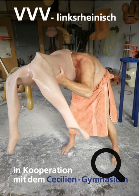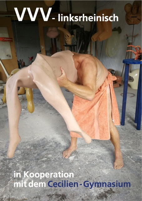 Der Künstler der diesmal für 1 Jahr seine Arbeiten in den 2 Atrien der Schule zeigt, heisst Thomas Bernstein. Er studierte von 1978 bis 1985 an der Kunstakademie Düsseldorf bei Tony Cragg und Fritz Schwegler und lebt und arbeitet in Düsseldorf. Er ist Bildhauer, Zeichner und Performer und erstellt neben figürlichen Arbeiten auf Papier auch abstrahierte körperbezogene Skulpturen aus verschiedenen Materialien, vornehmlich Silikon. Vorherrschendes Thema in seinen Performances und Skulpturen ist die Bewegung, das Alltägliche und das Absurde und die menschliche Kommunikation, so entstehen seine sogenannten bewegten Skulpturen an denen er schon seit seinem Studium an der Kunstakademie arbeitet.