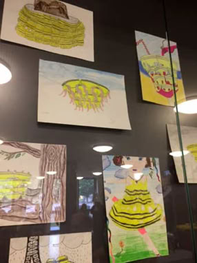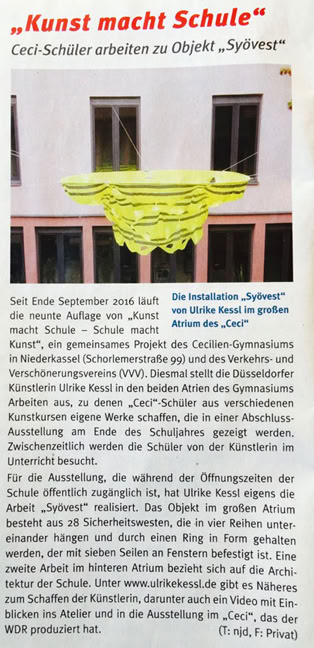 über die Schülerausstellung in Ceciliengymnasium, bei der die Arbeiten gezeigt werden, die im Schuljahr im Unterricht zu der Luftskulptur von Ulrike Kessl entstanden sind.