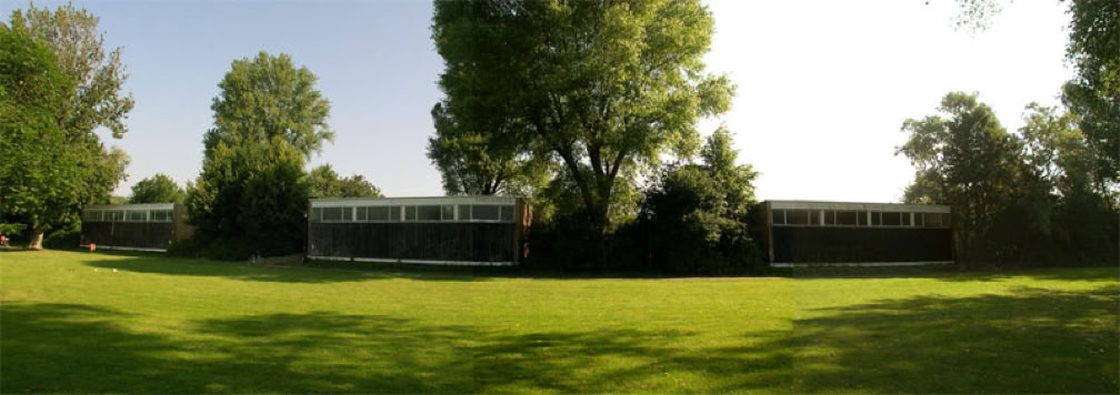 Die Gefahr, die nun erneut lauert, hat einen Vorläufer an gleicher Stelle: Die Technikzentrale neben dem Schwimmbecken wurde später ohne jegliches Einfühlungsvermögen für den Standort angebaut, zwar funktional, aber so billig wie möglich.