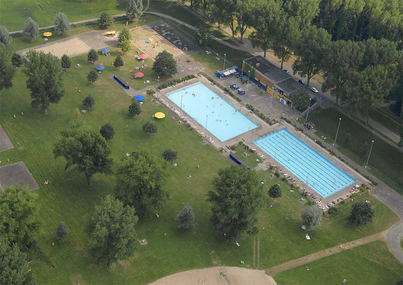 Für Eingeweihte heißt der Ort am alten Rheinarm immer noch "Paradieshafen". Hier hat 1957 ein bedeutender Wiener Architekt Gebäude für ein Freischwimmbad errichtet. Gebäude, die zum Besten gehören, was die zeitgenössische Architektur zu bieten hatte, sensibel und behutsam in die so typische niederrheinische Landschaft gesetzt.