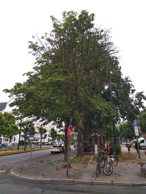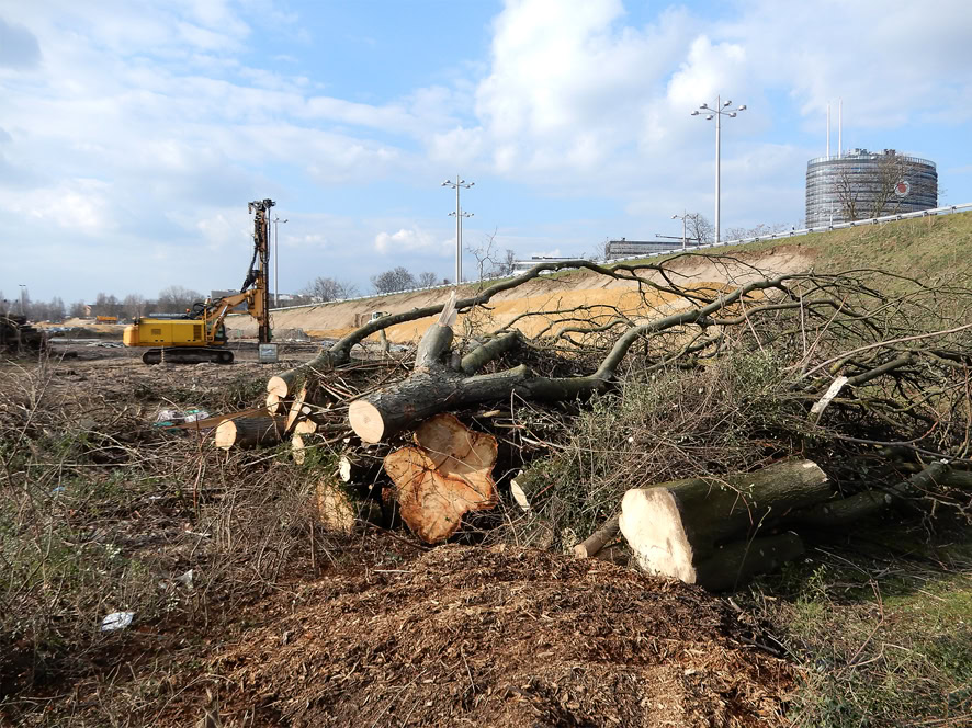 Trotz Gott sei Dank immer lauter werdender Diskussionen zum Klimawandel werden im Linksrheinischen Grünflächen vernichtet und Fakten geschaffen.